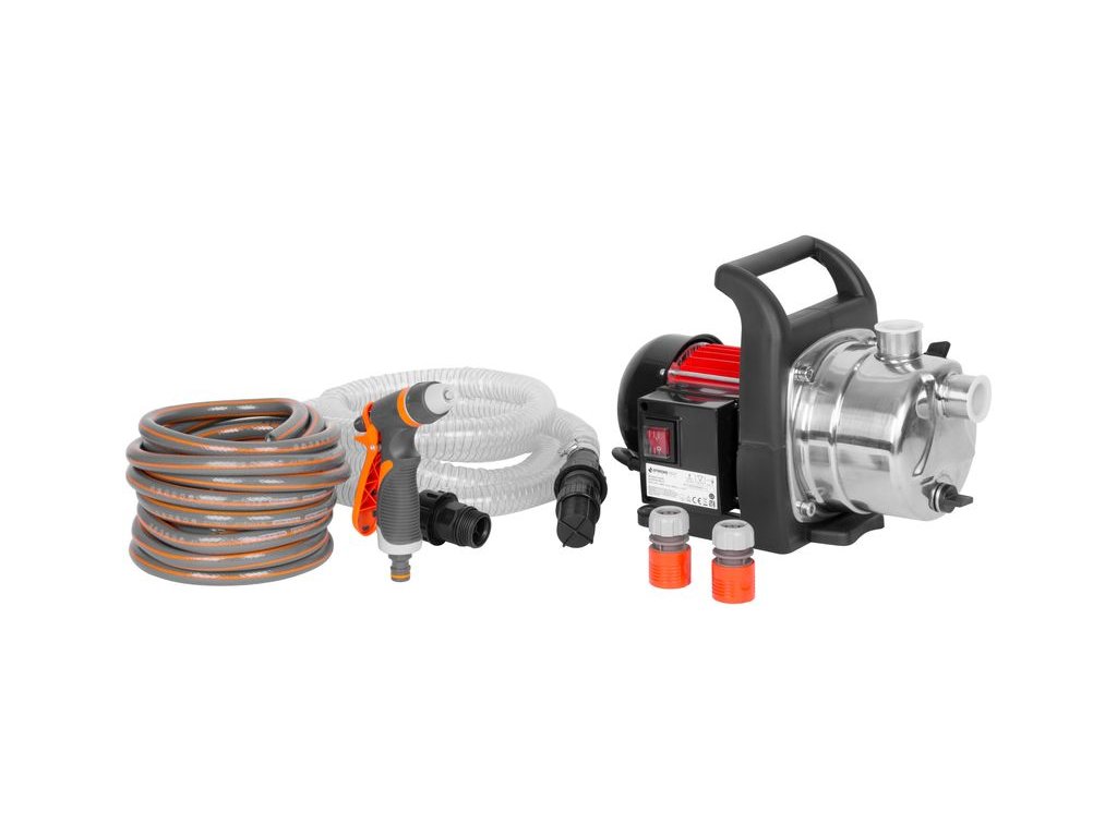 Záhradné čerpadlo s príslušenstvom je skvelým pomocníkom na čerpanie čistej,dažďovej alebo chlórovanej vody (napr. v plaveckých bazénoch). Najčastejšie sa záhradné čerpadlo používa na zavlažovanie a zalievanie, prečerpávanie a vyčerpávanie nádrži (napr. plaveckých bazénov), čerpanie vody zo studni, sudov na dažďovú vodu a cisterien. Čerpadlo disponuje výkonným motorom s príkonom 1000 W, ktorý je poháňaný elektrinou zo zdroja s napätím 230 V. Do prípojky čerpadlo zapojíte pomocou napájacieho kábla, ktorý je dlhý 1,2 m. Čerpadlo poskytuje prietok 3 400 l vody za hodinu a maximálny výtlak 44 m. SET obsahuje : čerpadlo, saciu hadicu 1“ x 3,5 m, 3-vrstvovú záhradnú hadicu 1/2“ x 7 m, 2x rýchlospojka 1/2“ a nastaviteľnú trysku s 2 funkciami.