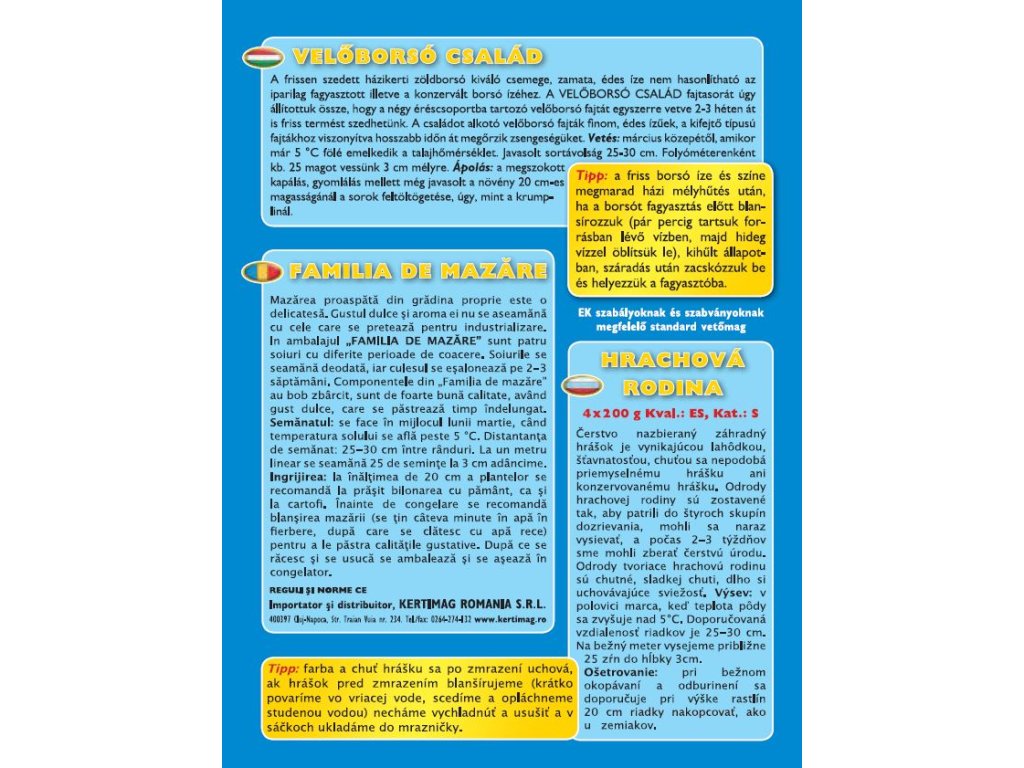 Hrachová rodina sú štyri druhy hrachov po 200 g, od najskoršieho až po neskorý, každý zvlášť nabalený. Pri vysadení v jednom termíne nám bude postupne dozrievať.