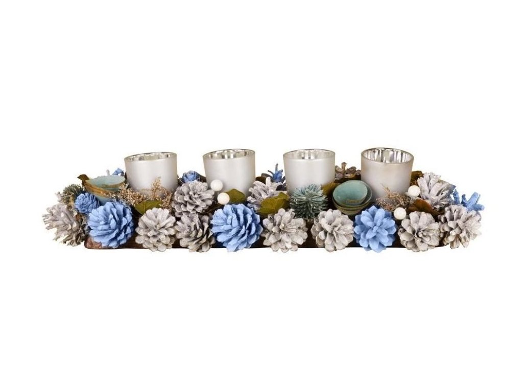 Ikebana MagicHome, prírodná, strieborné poháriky, L-45 cm, modrá, adventný