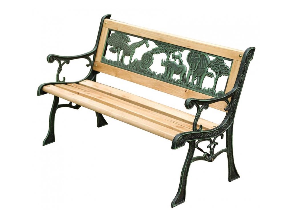 Záhradná lavička je malým, ale funkčným doplnkom. Konštrukcia je vyrobená z kovu. Časť určená na sedenie a opieranie je vyrobená z drevených dosák prírodnej farby. Kov na celej konštrukcii je ozdobný, čím sa stane lavička okrasným prvkom vašej záhrady. V časti na opieranie sa tiež nachádzajú kovové podobizne stromov alebo zvierat ako je žirafa, lev či slon. Rozmery lavičky sú 82x39x50 cm.