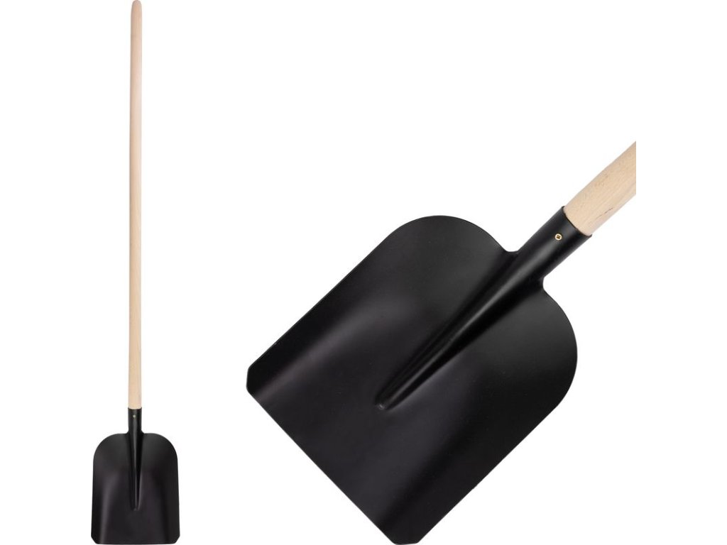 Čierna lopata s drevenou násadou. Rozmer lopaty: 28x23,5 cm.