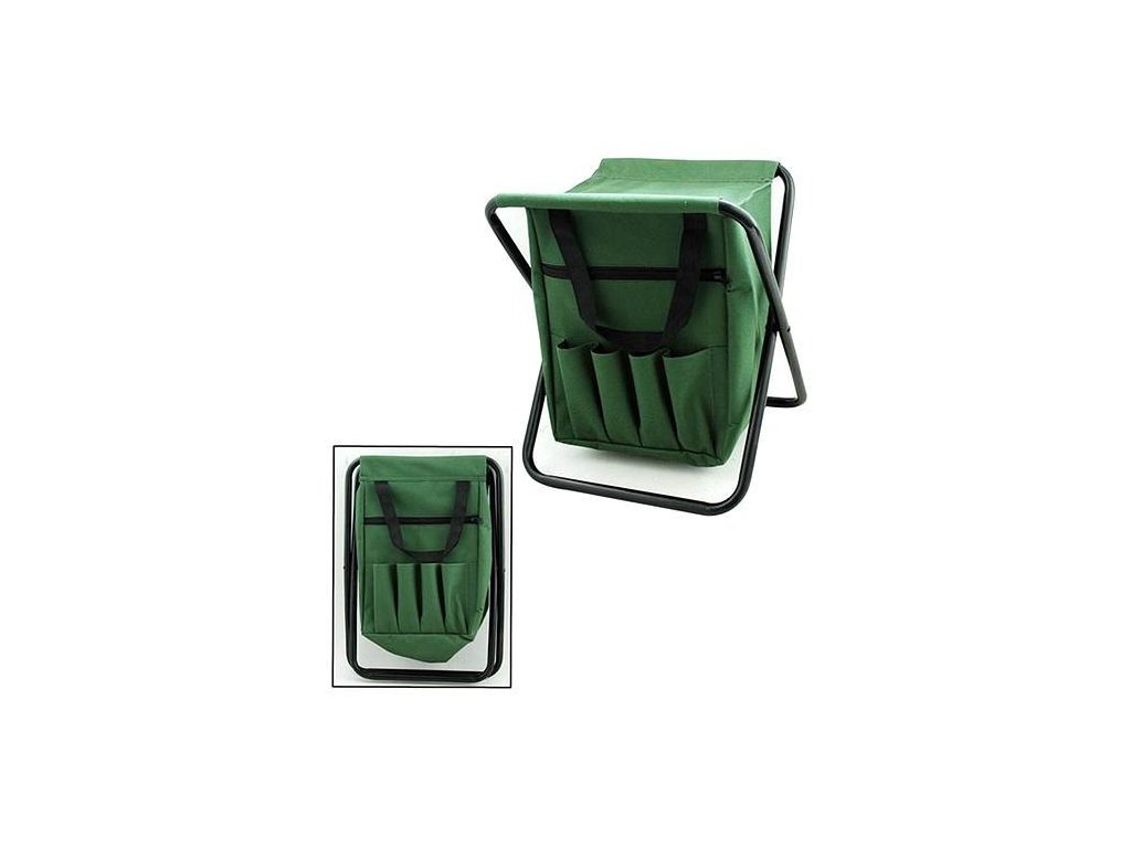 Skladacia stolička je praktickou pomôckou pri rybárčení. Je ľahko prenosná a vďaka možnosti zloženia zaberá veľmi málo miesta. Konštrukcia stoličky je vyrobená z kovu, zvyšok je pokrytý zelenou látkou. Rozmery sú 27x25x30 cm a jej nosnosť je 80 kg. Výhodou stoličky je úložný priestor, ktorý sa nachádza priamo pod sedacím priestorom. Na bočnej strane sa tiež nachádzajú 4 menšie odkladacie priestory. Vďaka tomu môžete mať po ruke veci, ktoré potrebujete.