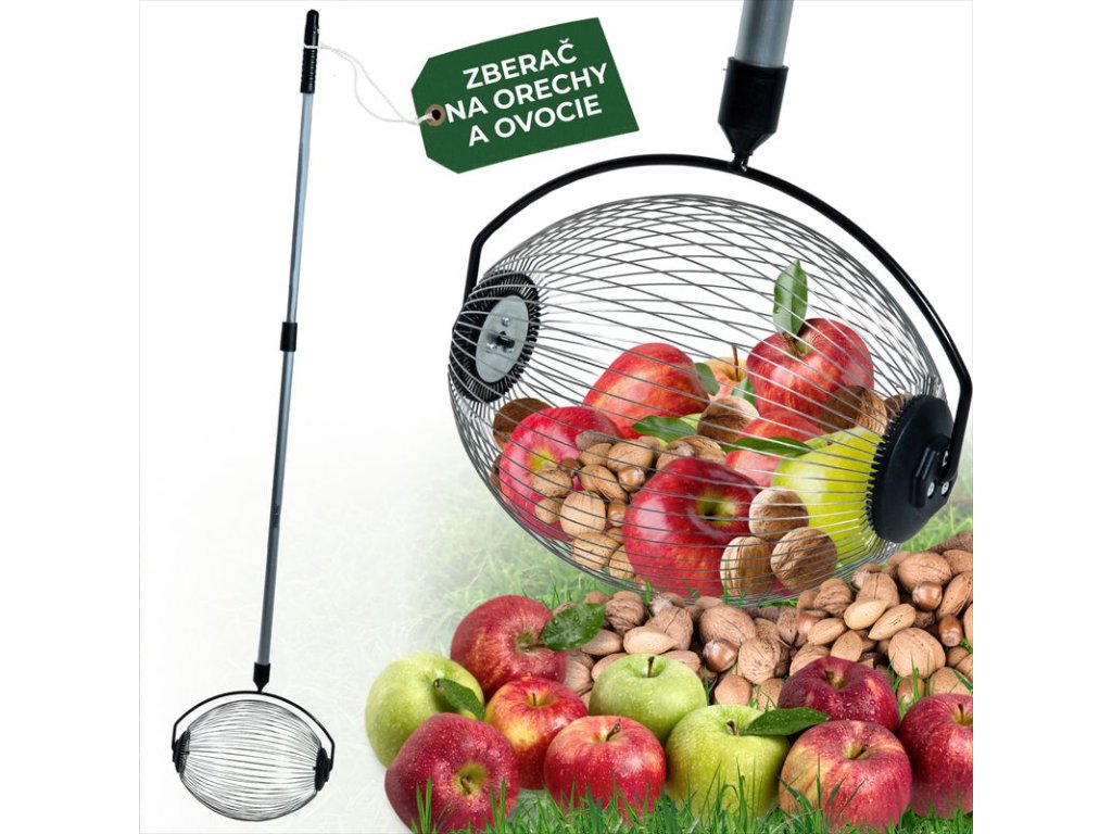 Zberač ovocia Strend Pro výrazne uľahčuje prácu pri zbere ovocia zo zeme. Obsahuje hliníkovú teleskopickú rukoväť s dĺžkou 80-120 cm. Veľkosť zberacieho košíka je 24,5x21,5 cm.